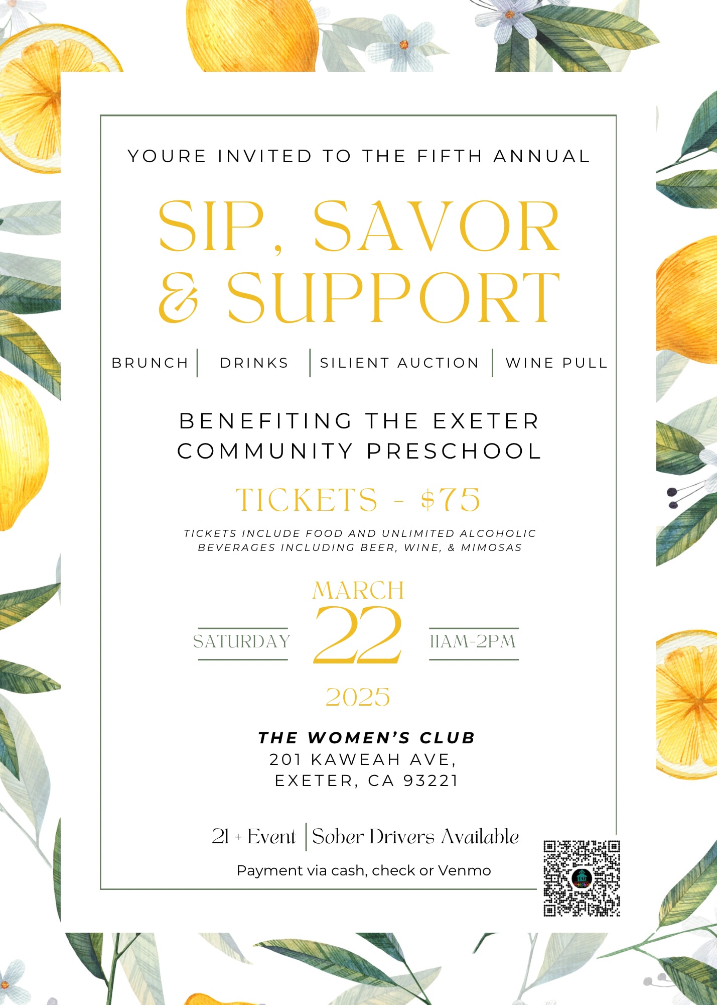 Sip, Savor, & Support! You're invited to the 5th Annual Brunch benefiting the Exeter Community Preschool. Enjoy brunch, drinks, silent auction and wine pull at the Exeter Women's Club on Saturday March 22nd, 11am-2pm. Make sure to get tickets before they sell out!Images